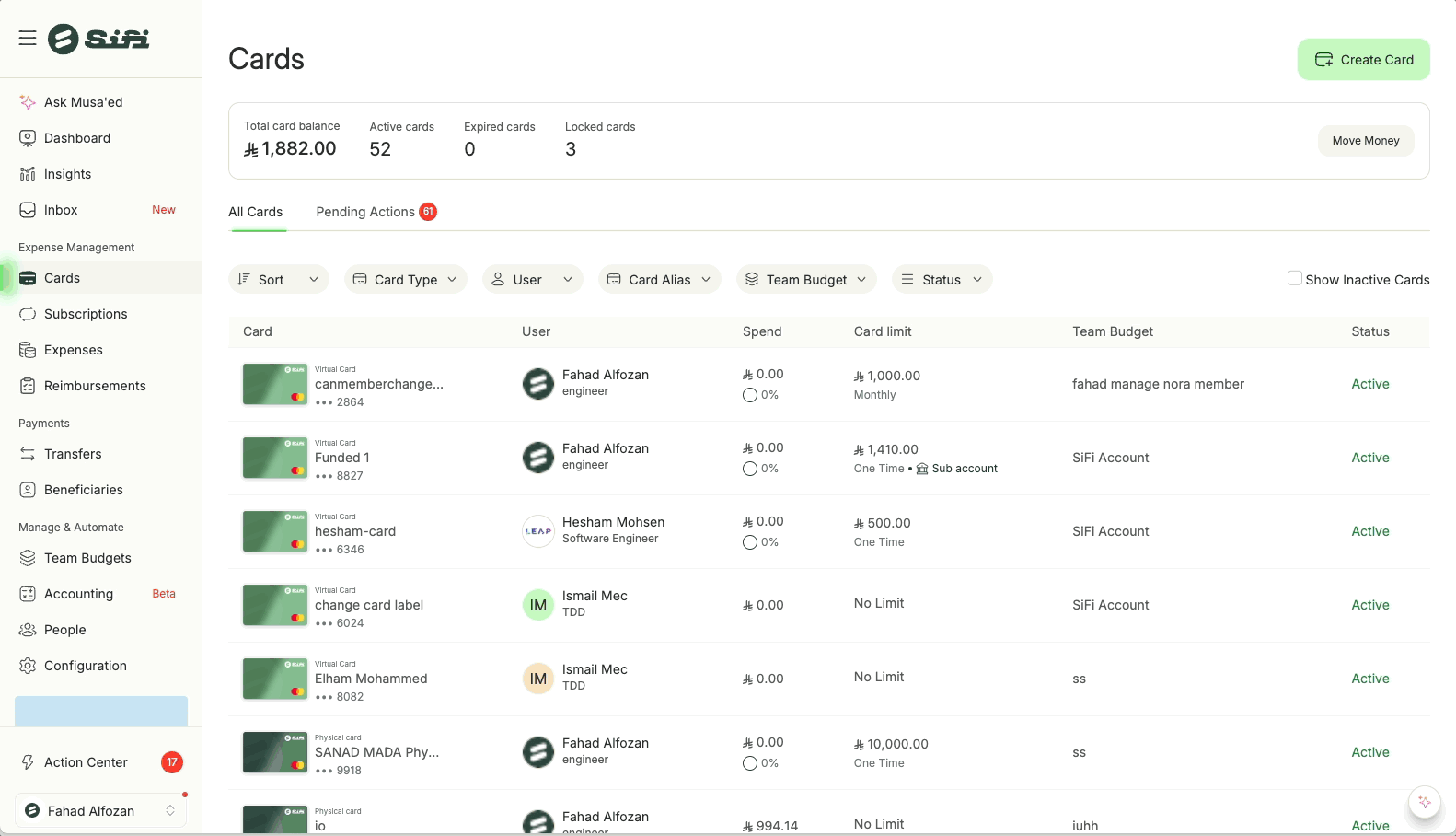 💬 Need help creating virtual cards in bulk or enabling sub-account cards? Contact our support team at support@sifi.sa.